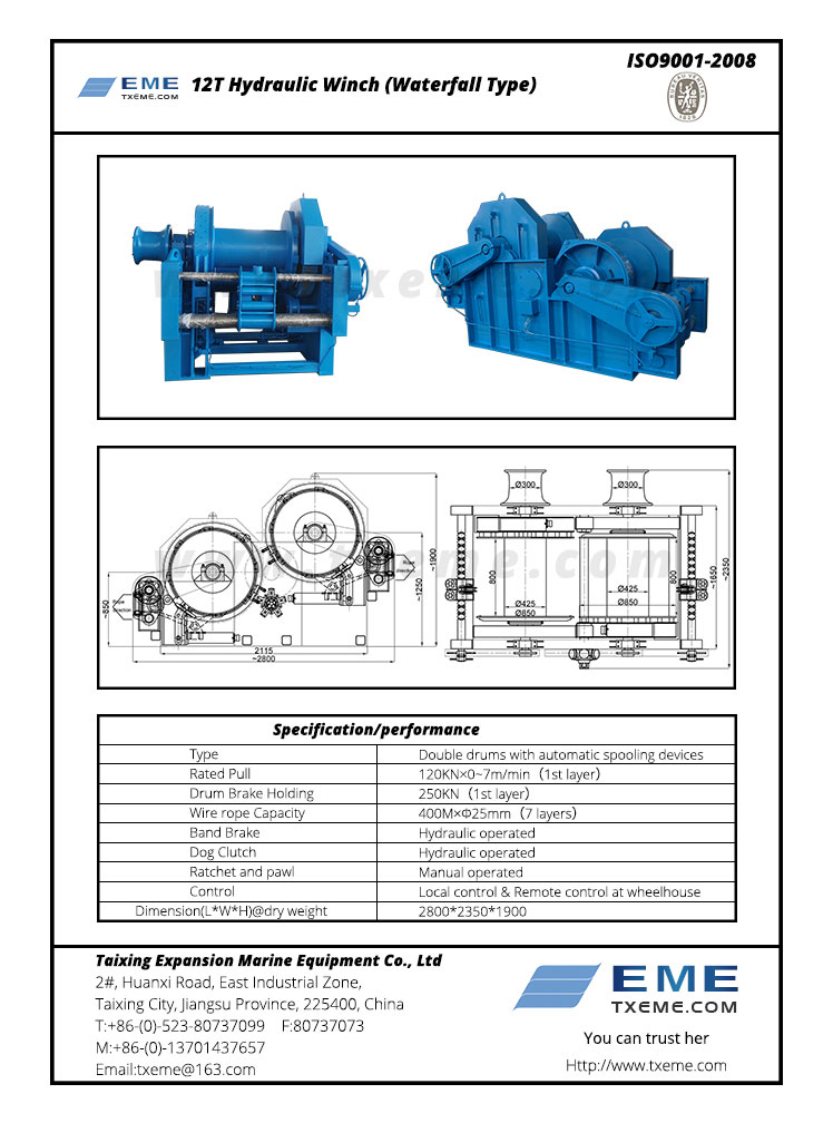 12T液压双卷筒瀑布式拖曳绞车资料