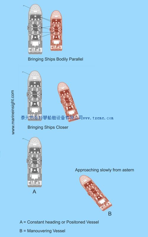 船舶到船舶转运操作涉及两艘不同或相同大小的船舶系泊,用于货物转运。在此操作期间,其中一艘船舶处于锚地或两者正在进行中。系泊安排取决于船舶的大小。船只在锚定或停止并保持恒定的航向时,机动船以接近的角度接近尽可能小的距离。接近的区域通常是恒定船头的梁。在机动船靠近的过程中,它引导与另一艘船的航向相当的航道,并将船舶之间的水平距离减小到不到100米。一旦达到这个状态,机动船使用发动机和方向舵的动作,并将距离进一步减小,直到挡泥板碰到彼此。因此,这两艘船然后平行接触,线路分别按照系泊计划通过。作为一种常见的做法,风和海是优先从前方或与弓的非常小的角度。