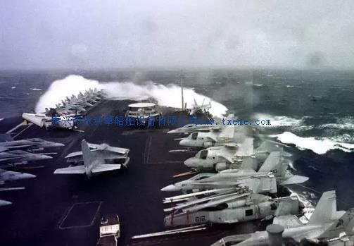 通常情况下,航母及其战斗群远离风暴但我在海军服役的时候我经常上许多船只。当一次旅行时与战斗群舰船,我们受到了飓风或海浪接近在东太平洋,一个较小的船舶的船体破裂而航母很稳定。
