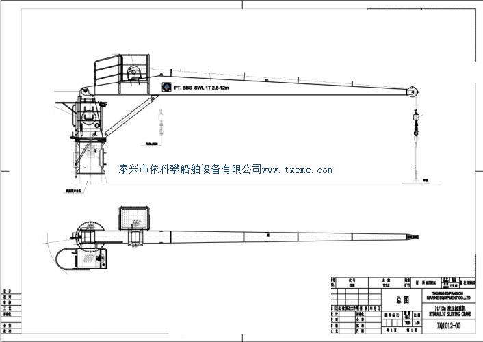 2. 吊机的操作是设在操作台的手柄操作,采用比例阀控制,可实现无级调速
